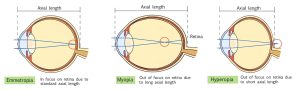 The most common type of refractive error in children is hyperopia. At birth, children are slightly far sighted which improves with age, but in cases of severe hyperopia, retina cannot be focused, which prevent children from developing normal vision. Similarly, strong astigmatism can also cause amblyopia.