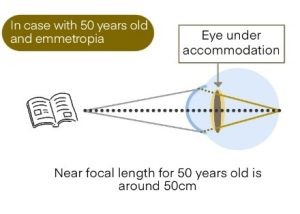 It is often said that “people with myopia do not develop presbyopia,” but this is incorrect. People with myopia can focus on nearby objects without accommodation, so they do not notice that they are having difficulty seeing nearby objects even when they develop presbyopia.