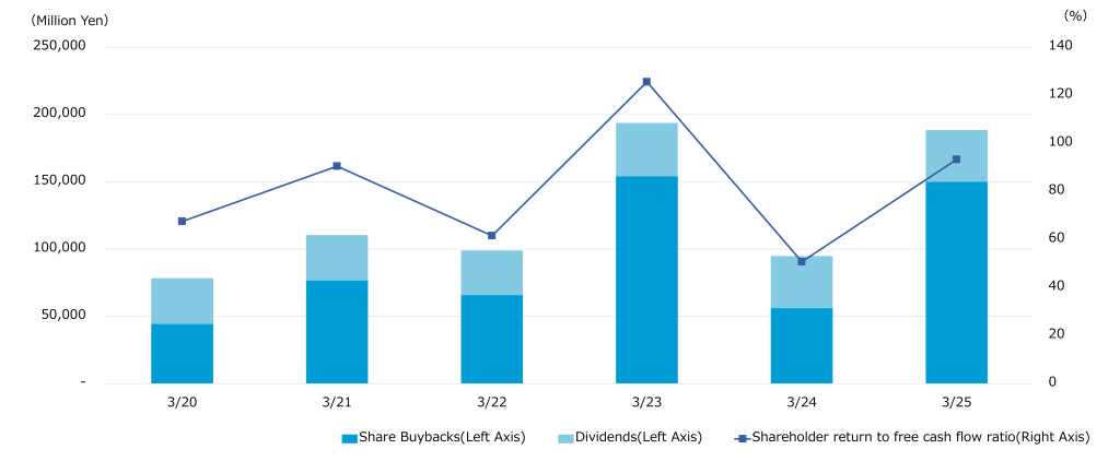 | Shareholder return to free cash flow ratio (Right Axis)* | 67.5% | 90.5% | 61.6% | 125.6% | 50.7% | 93.3% |