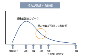 ただし、視覚の感受性は1歳半頃でピークに達し、徐々に失われていきます。8歳の時点でほぼ消失してしまうと言われるため、治療の開始が遅れれば遅れるほど効果は現れづらいでしょう。とはいえ、小さな子どもが自覚症状を訴えるのは難しく、一般的な視力検査が可能になるのは3~4歳頃です。