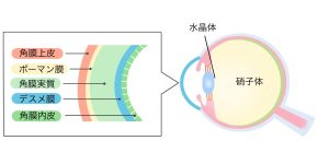 角膜の5層のうち、最も外にある角膜上皮(じょうひ)は、眼に異物が入るのを防ぐバリアの役割を果たします。