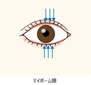 マイボーム腺は上下のまぶたにあるもので、まつ毛の生え際の内側に整列するように並ぶ小さな穴が開口部です。ここから脂を分泌する役割を担っています。
