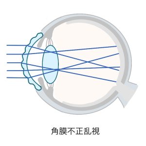 不正乱視は角膜の表面が不規則にゆがんだり、水晶体にゆがみが生じたりしたために正常に像が結ばれない状態を表します。