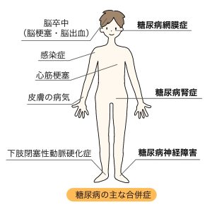 糖尿病そのものは命に関わる病気ではありません。しかし血糖値が高い状態が続くことで、細い血管の障害が引き起こされ、その結果として起こるさまざまな合併症が大きな問題となります。