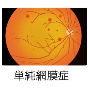 単純網膜症は、発症して間もない状態です。まず高血糖の状態が続くと、網膜にある毛細血管がもろくなり始めます。やがて毛細血管から血液が漏れ出ることで、血液中のたんぱく質や脂質が網膜に沈着し始めます。