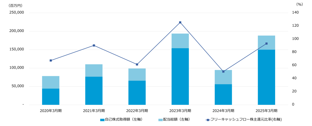 | フリーキャッシュフロー 株主還元比率(右軸)* |