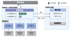 当社は「指名委員会等設置会社」という経営組織を採⽤しています。指名委員会等設置会社では、業務執行権限を執行役に持たせることで、スピーディーな事業運営を実現する一方、「指名委員会」「報酬委員会」「監査委員会」の3つの委員会が設置され、各委員会の過半数が社外取締役(当社は全員が社外取締役)で構成されることで、取締役会による経営の監督の実効性が担保されています。このように、指名委員会等設置会社とすることで、従来の監査役設置会社では明確に区分できなかった経営の執行と経営の監督を、より明確に分離した体制をとれることとなり、経営の効率性の確保ならびに経営の健全性・透明性の向上を目指しています。
