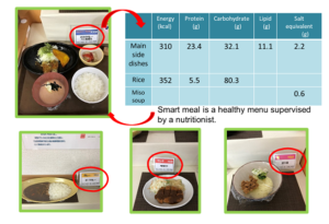 生活習慣改善の支援として、産業医や保健師により健康知識の啓発活動(講話やポスター掲示、面談など)を行っています。また、食生活の改善を目的として、食堂を有するすべての事業所において、提供する食事メニューの栄養成分と栄養摂取目安量を表示し、適切な栄養摂取目安量に基づいたヘルシーメニューの検討・提供を行っています。