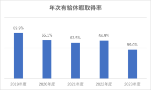 労働安全衛生法令に準拠した内容で「HOYAグループ過重労働による健康障害防止基準」を定め、グループ全社に展開しています。長時間労働者に対しては、産業医面談を徹底するとともに、労務管理と健康管理の双方の観点から、産業医が人事担当者及び管理者と連携して長時間労働を削減する体制を整えています。また、年次有給休暇取得率の向上を毎年のHOYAグル-プ環境・労働安全衛生・健康重点項目として掲げ、目標値を設定して、年次有給休暇を取りやすい職場環境の整備及び取得率向上に取り組んでいます。