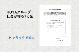 CEOによる健康経営宣言とともに、「HOYAグループ社員が守る7ヶ条」が社員へのメッセージとして配信されています。